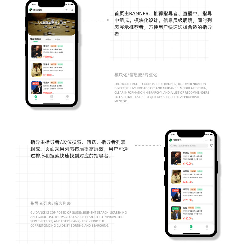 2. 推薦指導者:根據用戶的水平和需求,推薦合適的圍棋指導者,方便用戶選擇合適的老師進行學習。