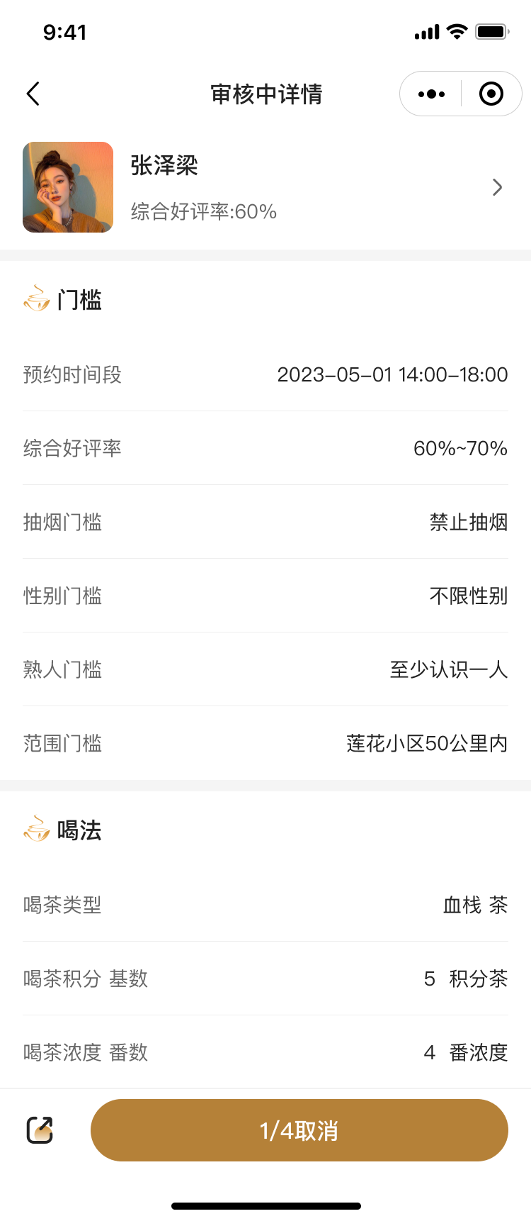 這款茶館預約小程序的核心功能便是在線預約。用戶只需打開小程序,便可查看附近茶館的地址、環(huán)境、茶品等信息。通過簡單的操作,用戶可預約心儀的茶館,選擇合適的時段,輕松完成喝茶的預訂。此外,小程序還支持實時查看預約狀態(tài),方便用戶隨時調整預約計劃。