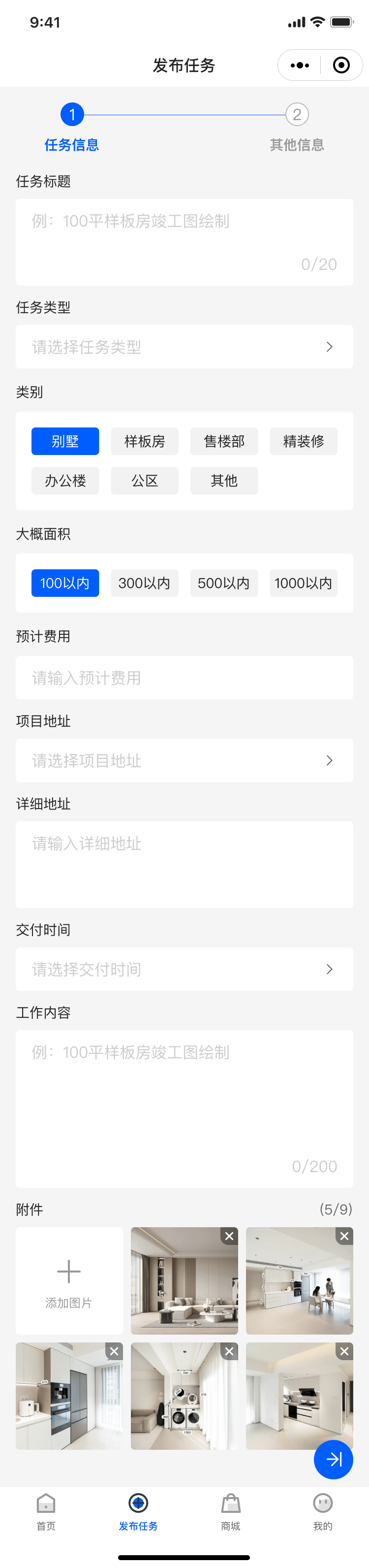 對于有裝修需求的用戶,該平臺也提供了便捷的發布需求的途徑。用戶只需注冊平臺,即可發布自己的裝修需求,包括項目類型、項目面積、項目地址、現場圖片、交付時間、設計要求、設計師資歷、設計要求、費用預算等。這樣一來,用戶的需求可以更精確地傳達給設計師,提高雙方溝通的效率。