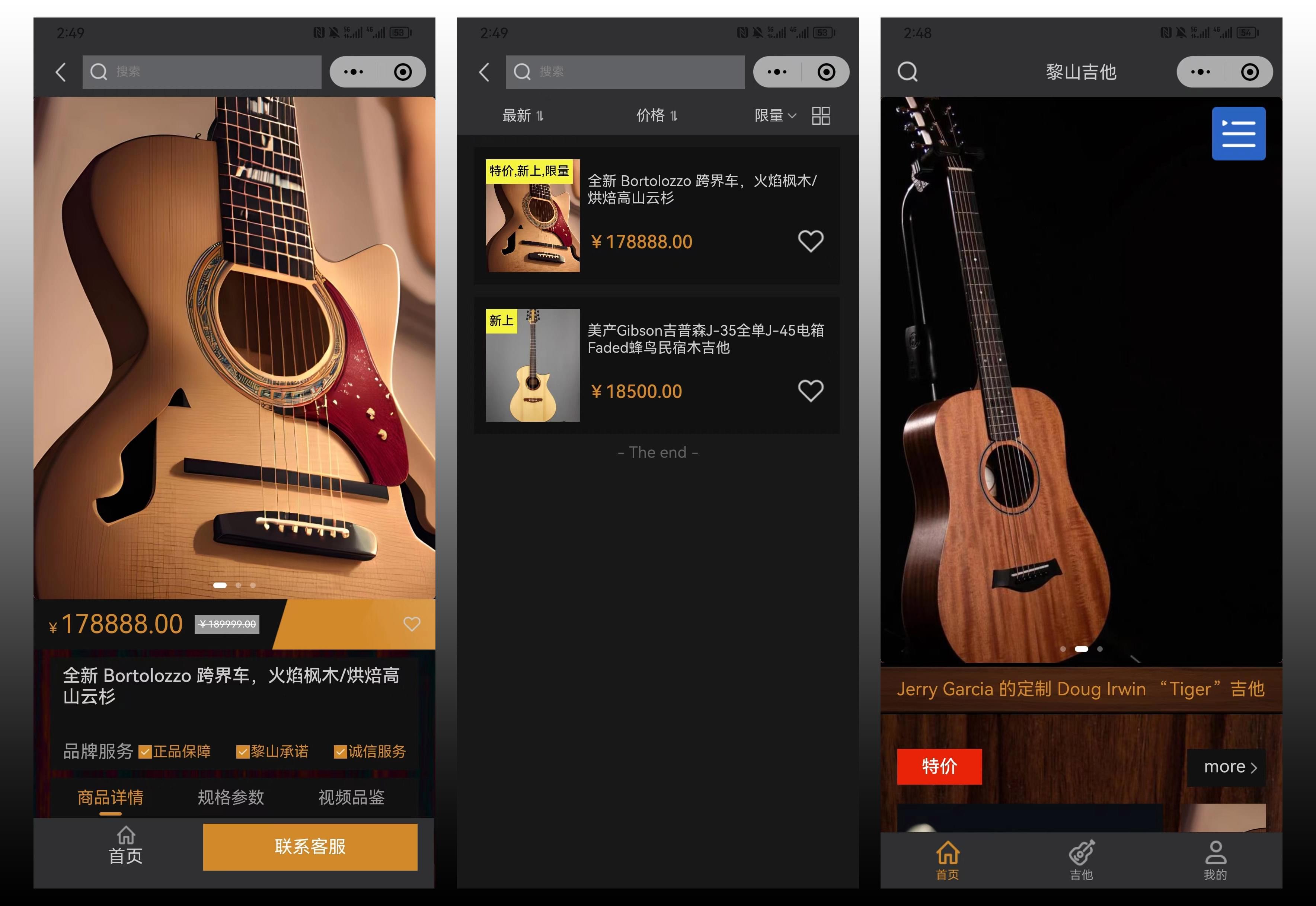 與普通吉他不同的是,該吉他平臺商城的定位是中高端吉他,售價一般都幾萬到幾十萬不等。客戶從網(wǎng)絡(luò)上瀏覽到我們的案例之后,喜歡我們的設(shè)計,就找到了我們。