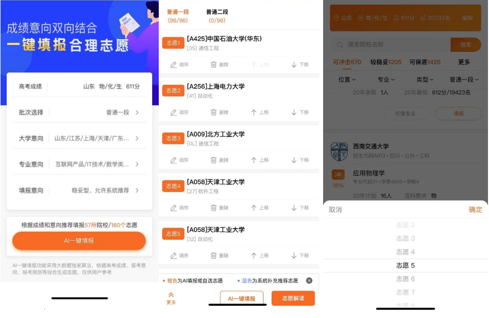 4. 志愿填報:考生可以根據興趣、愛好、積累等多方面的考慮,進行志愿選擇,同時也可以進行志愿調整,直到最滿意為止。